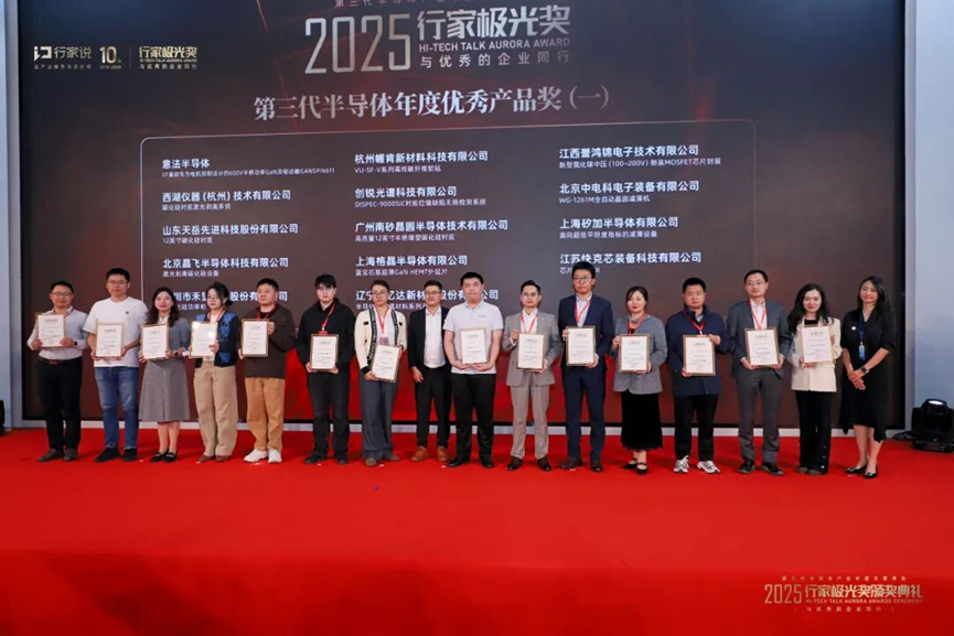 经过数月时间的紧密筹划,专家组委会和众多行业人士投票评选,2025行家极光奖各大榜单正式出炉。本届行家极光奖特别设立了【十强/影响力企业】、【年度企业】、【年度优秀产品】三大奖项,力图成为第三代半导体行业树立标杆,提升企业品牌认知度和影响力,为行业发展注入创新力与推动力。我司受邀参加此次会议,同时斩获三项大奖: