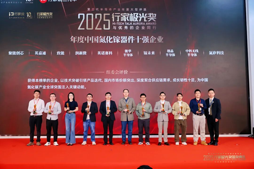 《中国GaN器件十强企业》《第三代半导体年度成长企业》《年度优秀产品奖》。